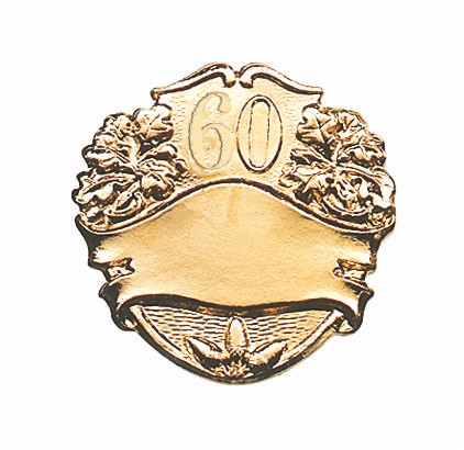 12376-13-60* - Abzeichen, vergoldet, mit Zahl 60, mit Sicherheitsnadel (wie abgebildet)